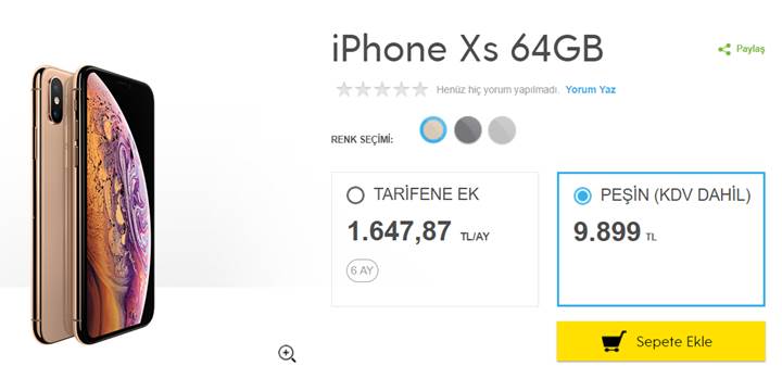 iPhone X’in güçlendirilen versiyonu olarak adlandırabileceğimiz iPhone Xs’nin 64 GB kapasiteli modelinin fiyatı 9899 TL olarak belirlendi. 256 GB depolama alanı bulunan iPhone Xs modeli ise 11199 TL’ye satılıyor.